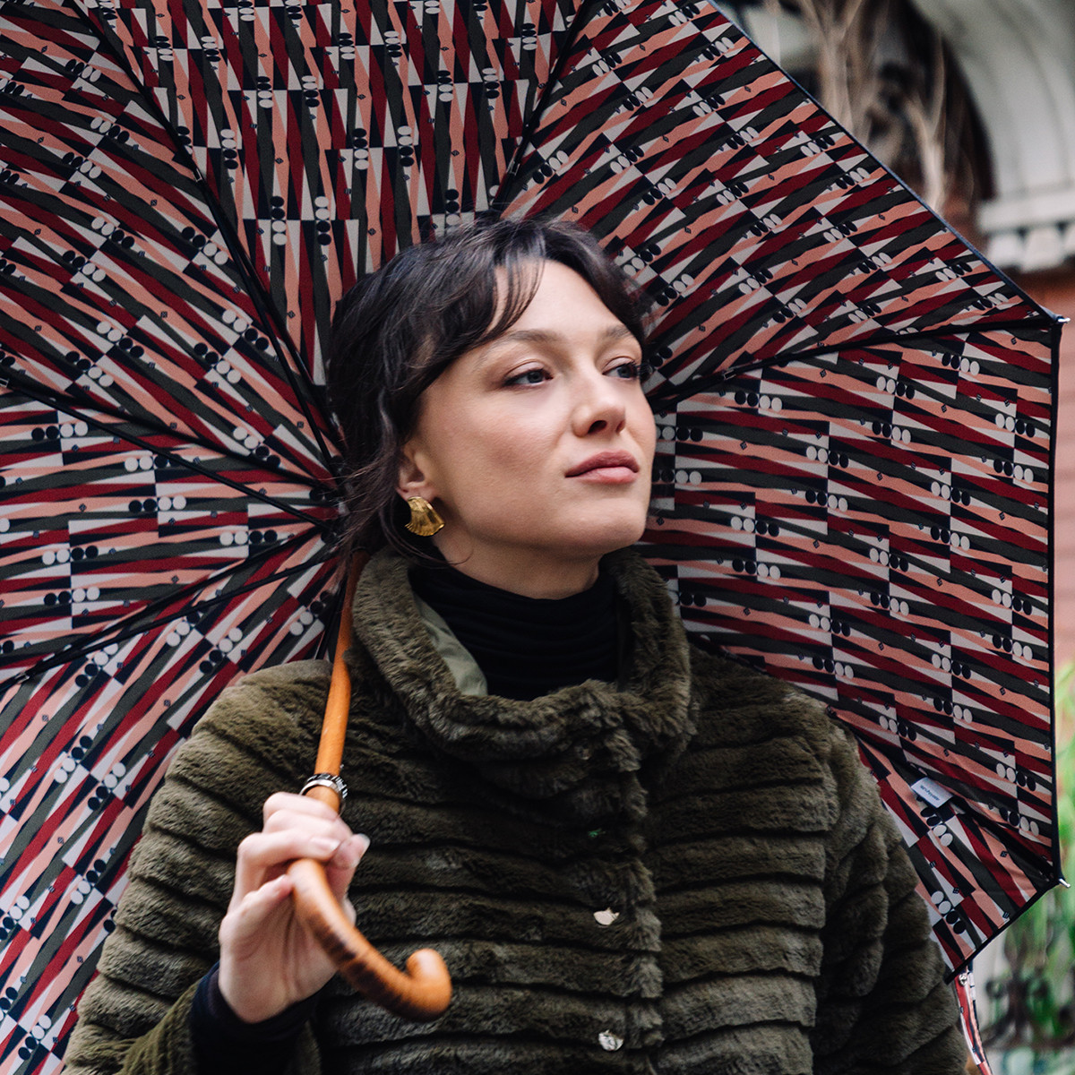 Parapluie femme canne DOUBLÉ BACKGAMMON