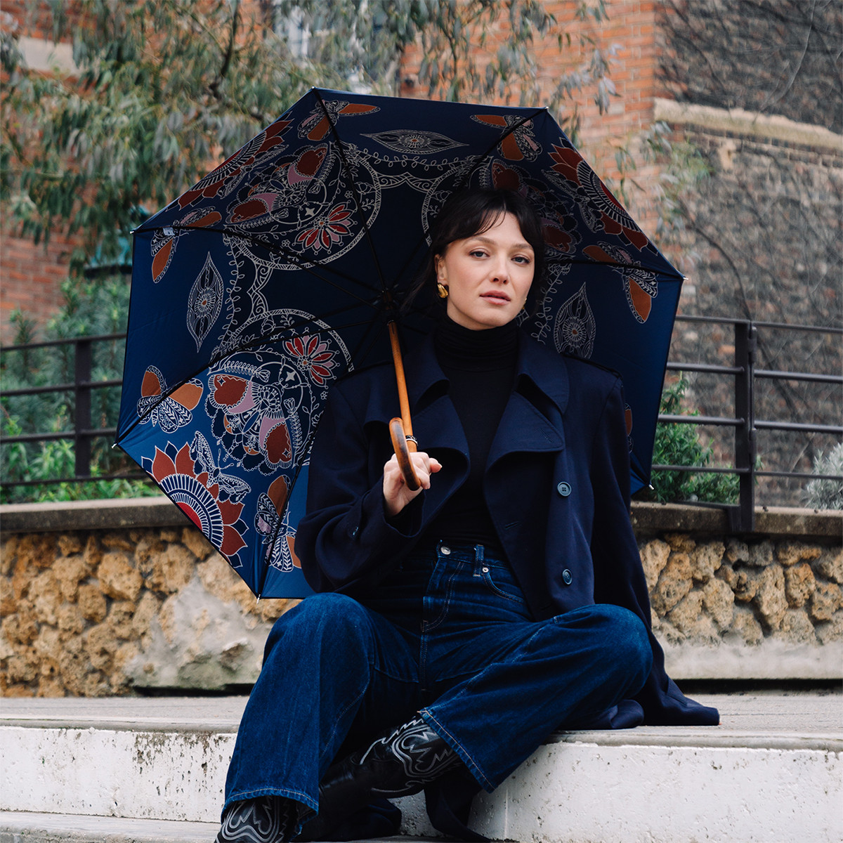 Parapluie femme canne DOUBLÉ MANDALA