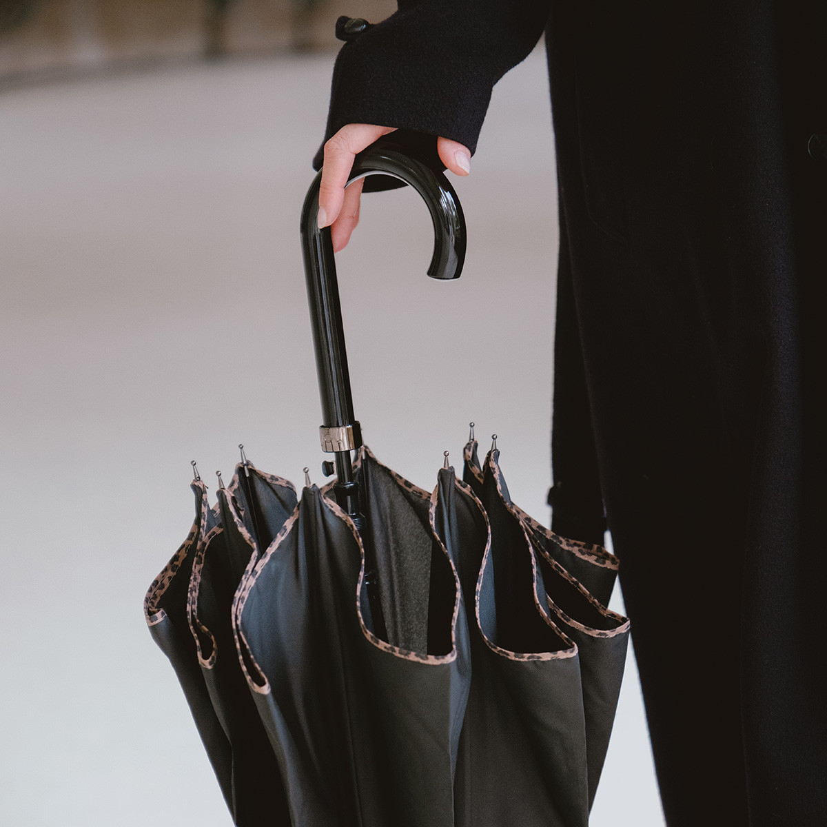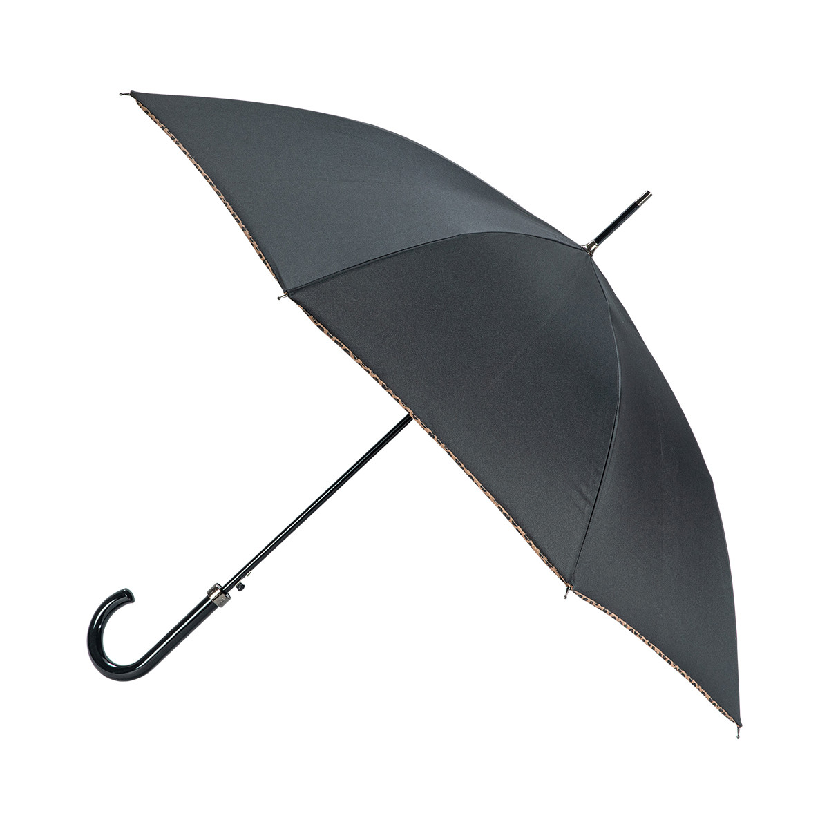 Parapluie Femme Canne Uni Noir finition LÉOPARD